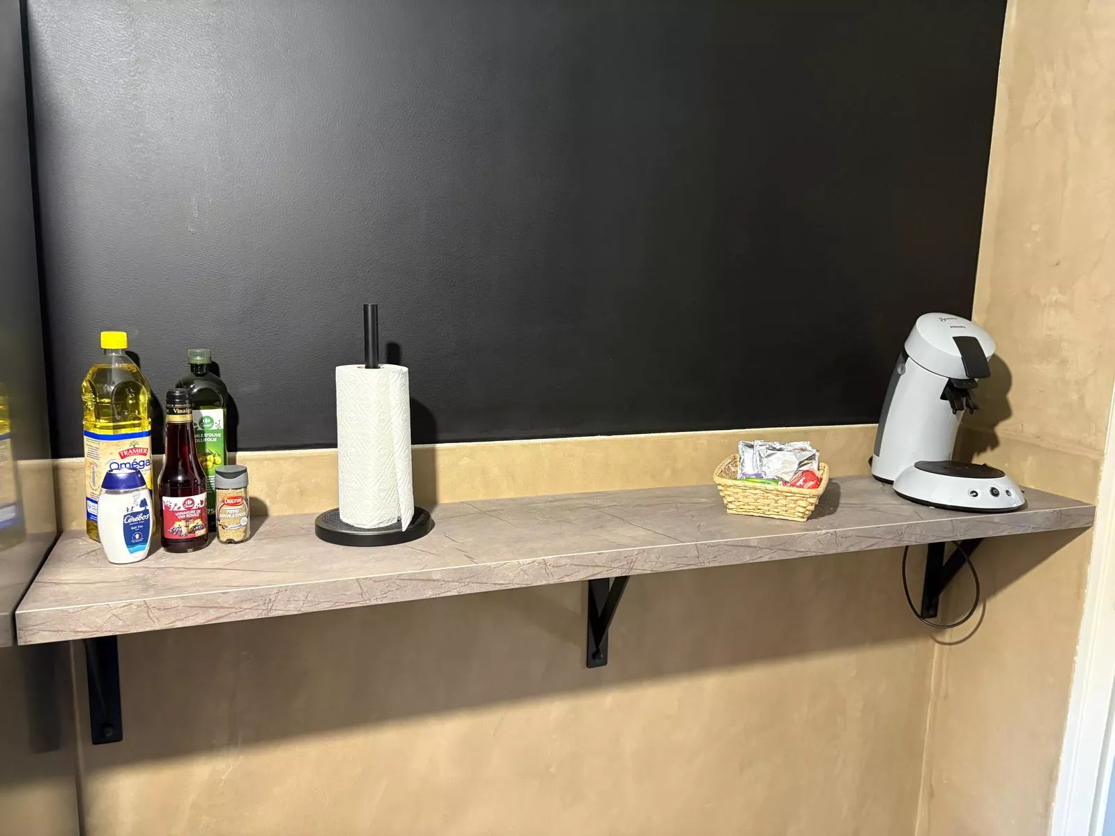Il dispose d'une belle cuisine équipée avec lave-vaisselle, machine à café Senseo et d'une machine à laver dans un petit cellier