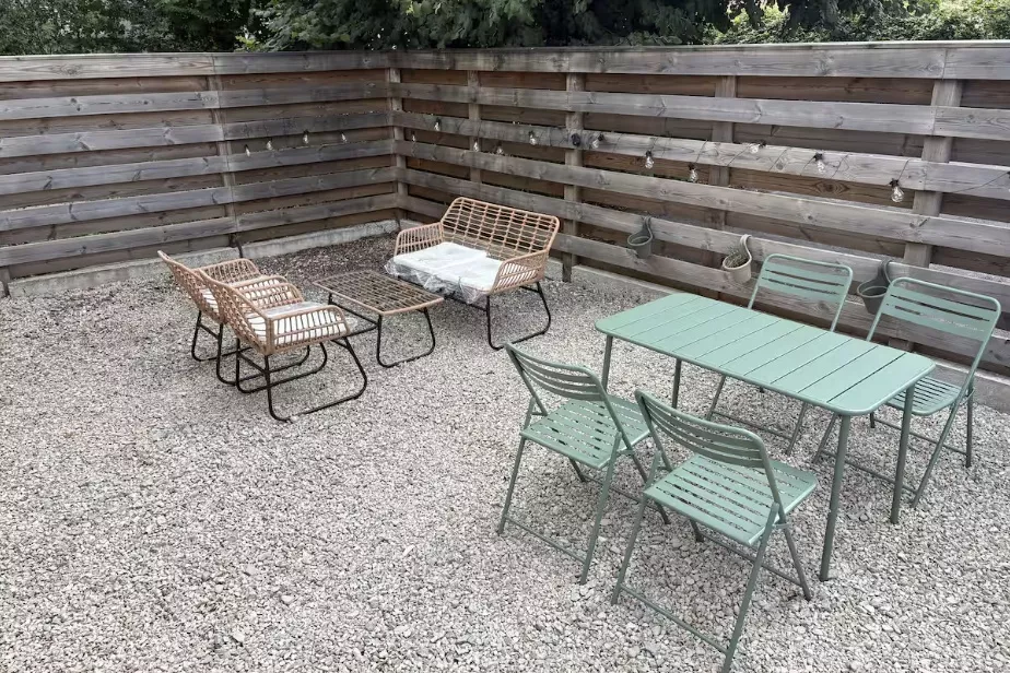 Un espace extérieur agréable avec salon de jardin